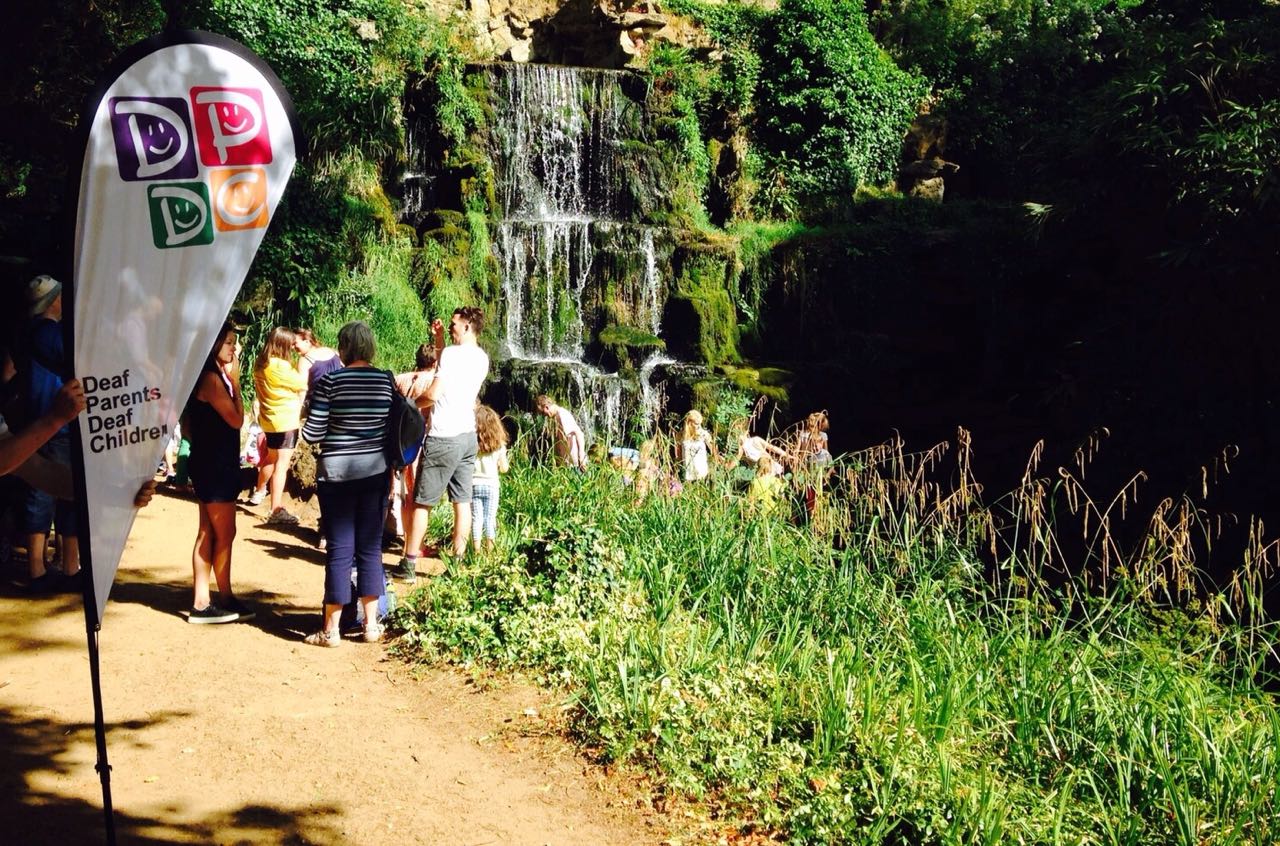 On Saturday 11th of July Deaf Parents Deaf Children returned to Bowood for the third time, and what a fantastic day it was! Hidden in the rolling hills of Wiltshire, the Bowood estate boasts one of the best adventure playgrounds in the country. A life-size pirate ship complete with rigging and a crows nest as well as a ‘space dive’ which featured giant slides aptly called the ‘slide of death’, chutes, trampolines and high-level rope walks. The kids were let loose while the parents caught up on the latest news and got acquainted with new friends. Once everyone arrived and settled into the fantastic surroundings, all the parents and kids gathered into one big circle and introduced themselves to each other.