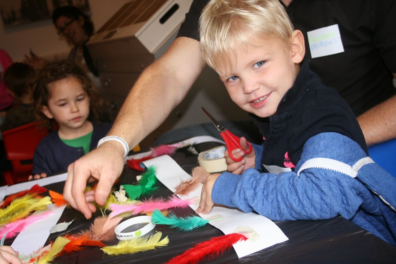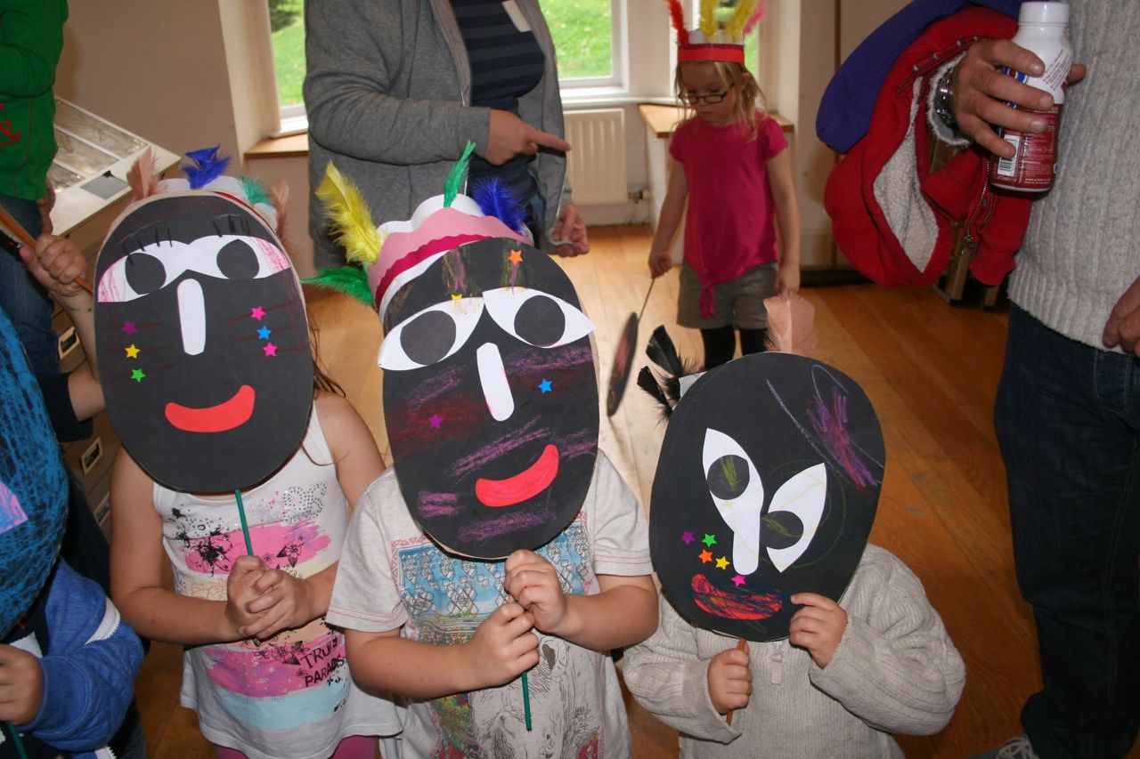 All the children had a fantastic time building a giant teepee, designing their own headdress and mask in an activity workshop run by Spiral Arts. At the end of the day, when the all parents arrived to pick up the children they had a big surprise when all the children pounced on the parents after patiently hiding in the giant teepee! A big thanks to Spiral Arts for hosting such a great activity workshop, and thanks to Clarion for providing an interpreter to work with interpreter Emily Copping who gave her services all day for free.